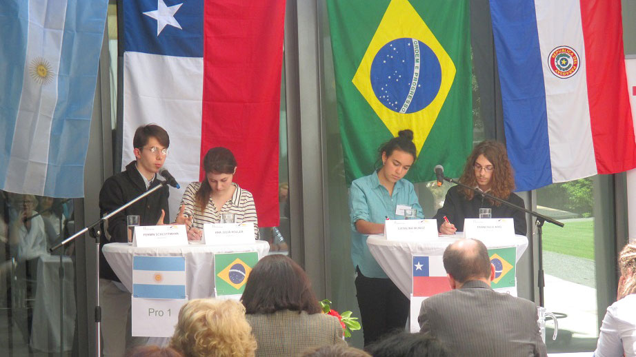 Das gab es noch nie! Erstmals kommen Jugendliche aus Argentinien, Brasilien, Chile und Paraguay zu einem gemeinsamen Debattierturnier in deutscher Sprache zusammen. Jugend debattiert gibt es nun auch in Südamerika, getragen von der Zentralstelle für das Auslandschulwesen und der Hertie-Stiftung. 45 Schulen nehmen 2016 daran teil. Abschluss und Höhepunkt ist das Internationale Finale, das am 21. Oktober in Santiago de Chile ausgetragen wurde. Das Thema der Schlussdebatte lautete: „Soll in unseren Ländern wie in Chile bei allgemeinen Wahlen Wahlpflicht durch Wahlrecht ersetzt werden?“ Der erste Sieger stammt aus Brasilien, heute studiert er in Deutschland.